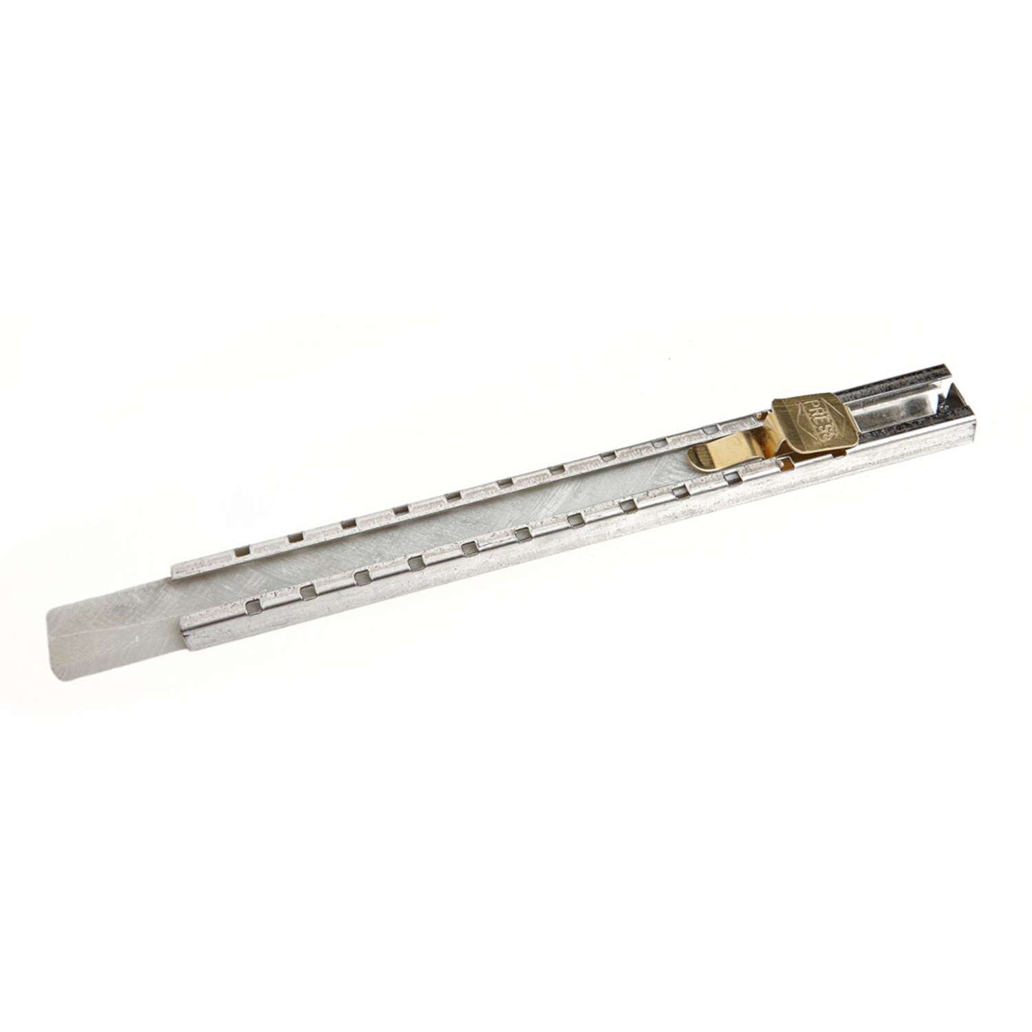 Flat Steel Soapstone Pencil Holder. Ruggedly constructed flat steel soapstone holder comes with a channel case design and convenient spring pocket clip. Easily indexable and smooth operating, this holder is designed for one-handed operation. To adjust soapstone length, simply press brass trigger with thumb and index to the next positive stop. Fewer working parts and more usable soapstone. Proven and superior design features that are widely used and preferred in the welding industry. Flat Steel Soapstone Pencil Holder. Ruggedly constructed flat steel soapstone holder comes with a channel case design and convenient spring pocket clip. Easily indexable and smooth operating, this holder is designed for one-handed operation. To adjust soapstone length, simply press brass trigger with thumb and index to the next positive stop. Fewer working parts and more usable soapstone. Proven and superior design features that are widely used and preferred in the welding industry.